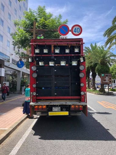 よさこい地方車に! 熱い踊りに負けない音を作りだしました^ ^