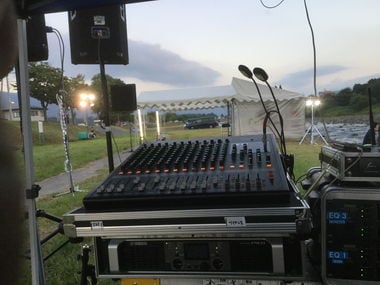 毎年、夏祭りで活躍してくれてます♪ 趣味で集めた機材ですが、卓はやっぱYAMAHAですね(´ー`) #PAクールビズ