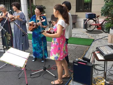 えっさホイ!IN ダイナシティ 9/14日,15日小田原城で開催される、えっさホイおどりの告知イベント。真夏の暑さも落ち着いて日影はよい季節。本日の居場所です。 #PAクールビズ