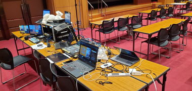 まだまだ夏は終わりません。キャストもスタッフも汗だくのミュージカルの現場です。 この横にはAW2400がポン出し用に置いてあります。