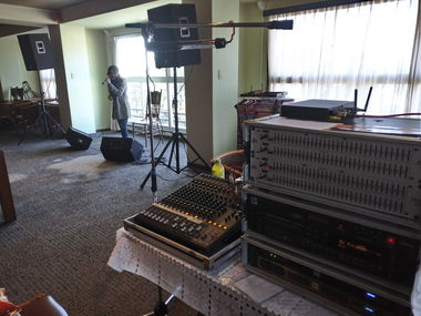 夏の終わりといえどもまだまだ暑い日、ホームBBQ大会ハワイアンで盛り上がりました。古きEM-70まだまだ現役です。ボーカルとラインで6ch、プラスaux入力でフル活動でした。