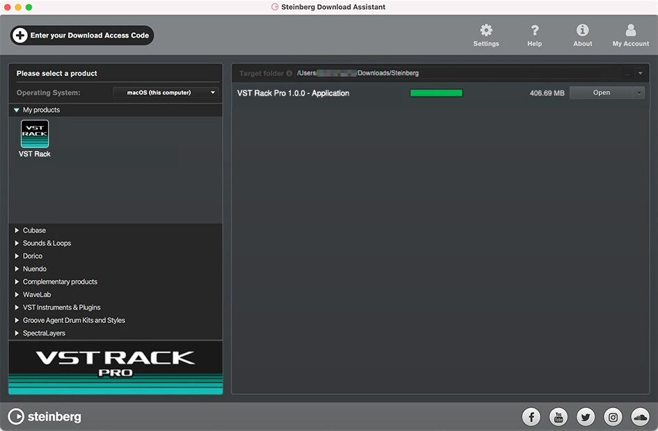 Steinberg Download Assistantのインストールが完了し、Steinberg Download Assistantを起動すると、コンピューターがインターネットに接続されます。