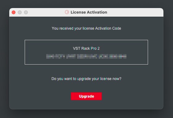 コードを入力すると、VST Rack Pro 2のライセンス認証コードが表示されます。