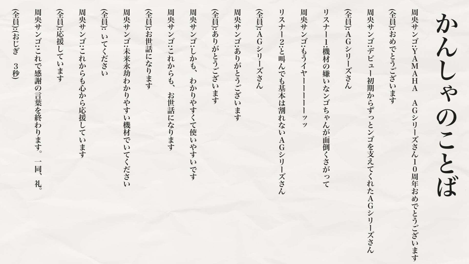 AGシリーズ 10周年、本当におめでとうございます!多くのクリエイターに愛されてきた10年間の節目にご一緒できたこと、大変光栄です。私の父もAG03の愛用者です!