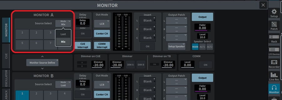 Monitor Source Defineから複数のソースを選択でき、最大8ソースのミックスが可能になります。