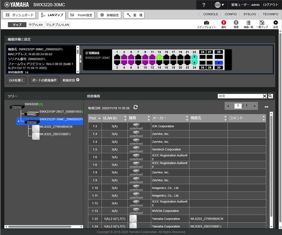 見える化を提供するためのWebアプリケーション「Yamaha LAN Monitor」を提供しています。