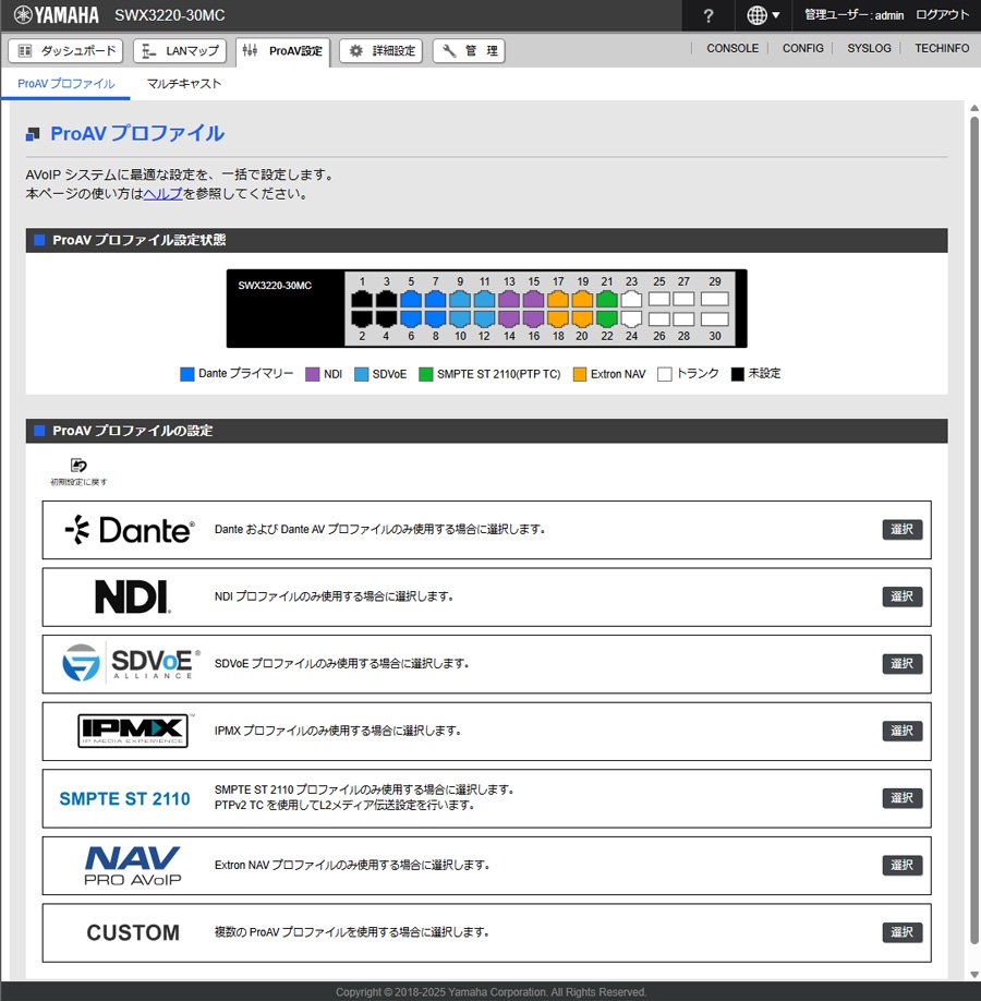 対応のヤマハプロオーディオ製品を接続することにより、自動的にスイッチにDante最適設定を反映。詳しくないユーザーでもネットワーク設定を一切触ること無く最適な設定で使うことができます。