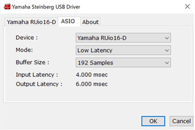 現在のドライバーバージョンは、Yamaha Steinberg USB DriverコントロールパネルのAbout項目よりご確認いただけます。