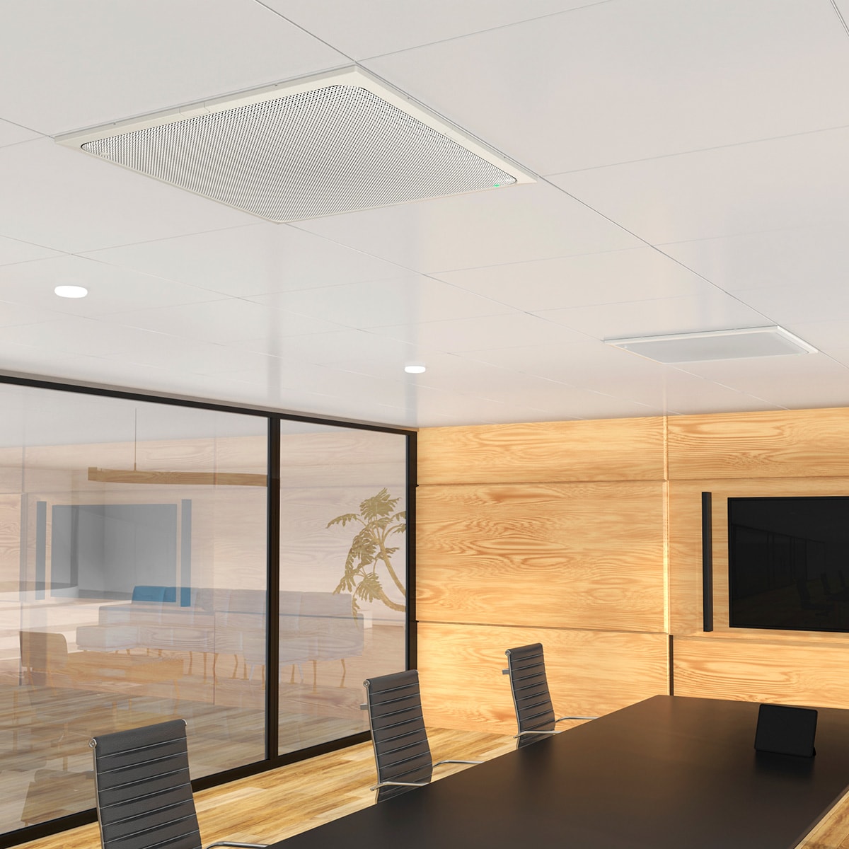 広い指向角と高音質を両立し、さらにRoom EQやDelay、Dynamics等のDSPを内蔵、外部制御対応。ネットワークケーブル接続の多機能パワードシーリングスピーカー。