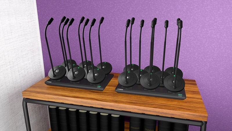 レイアウト変更や用途(会議、セミナー、研修など)に合わせて配線の手間なく、グースネック型・テーブルトップ型の2種類のマイクから選択し、最適な運用を行えます。