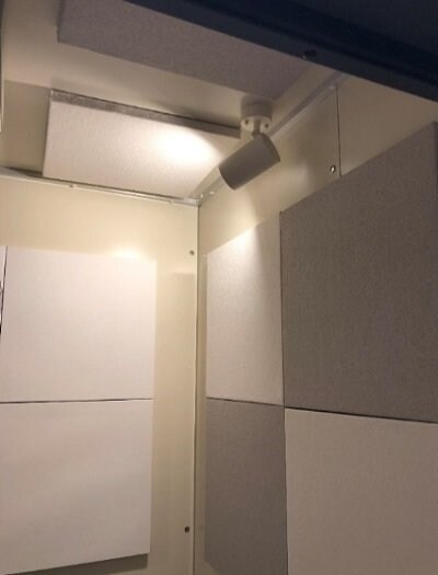 室内には別売りの吸音材を取り付け(マグネットテープ取付式)、これで室内の響き過ぎを抑えます。