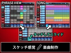 セクションをペーストして組み合わせ、ソングとして完成させます。セクション部分にタッチし、そのままデータエリアにドラッグ&ドロップするだけの手軽さです。