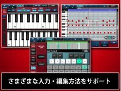 アプリ上の鍵盤を用いたリアルタイム録音や、ピアノロール入力によるユーザーフレーズ作成も可能です。強力なLOOP REMIX機能を用いて、選択されたフレーズを指定した間隔で分断してランダムに並べ替え、ロールやブレークの挿入を自動的に行い、新しいフレーズに作り替えることが出来ます。