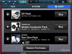 7種類のボイス・フレーズ・ソング・セクションのデータパックもアプリから直接追加購入可能です。(フレーズ・セクション: QY, ソング・フレーズ: TeddyLoid/Mobile Conductor, access/永遠dive, ボイス・フレーズ: Dance Pop, Electronic, Hip Hop, R&B)