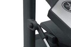 バスドラムの締め枠に対する確実な固定力とともに、脱着の簡易性を追求したサイドスクリュー方式のフープクランプ調整ボルトを採用しました。締め枠上部に接触するフープクランプ部裏面、及び締め枠下部に接触するフレーム受け側の両方にラバーを装着したことで、締め枠に対する固定力、安定性を向上させるとともに、締め枠側の損傷を防ぎます。