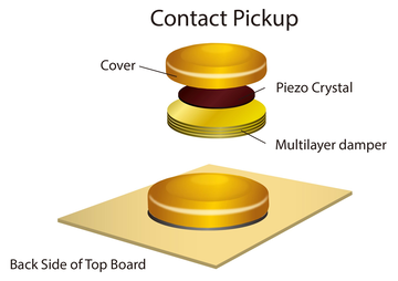 3Wayピックアップシステム(SYSTEM57/59/60)では、表板裏面のコンタクトピックアップをメインピックアップとし、さらに ベース用/トレブル用の2つのサブピックアップを搭載。サブピックアップの調整で、リアルな箱鳴り感やきらびやかな倍音成分までもコントロールすることができます。