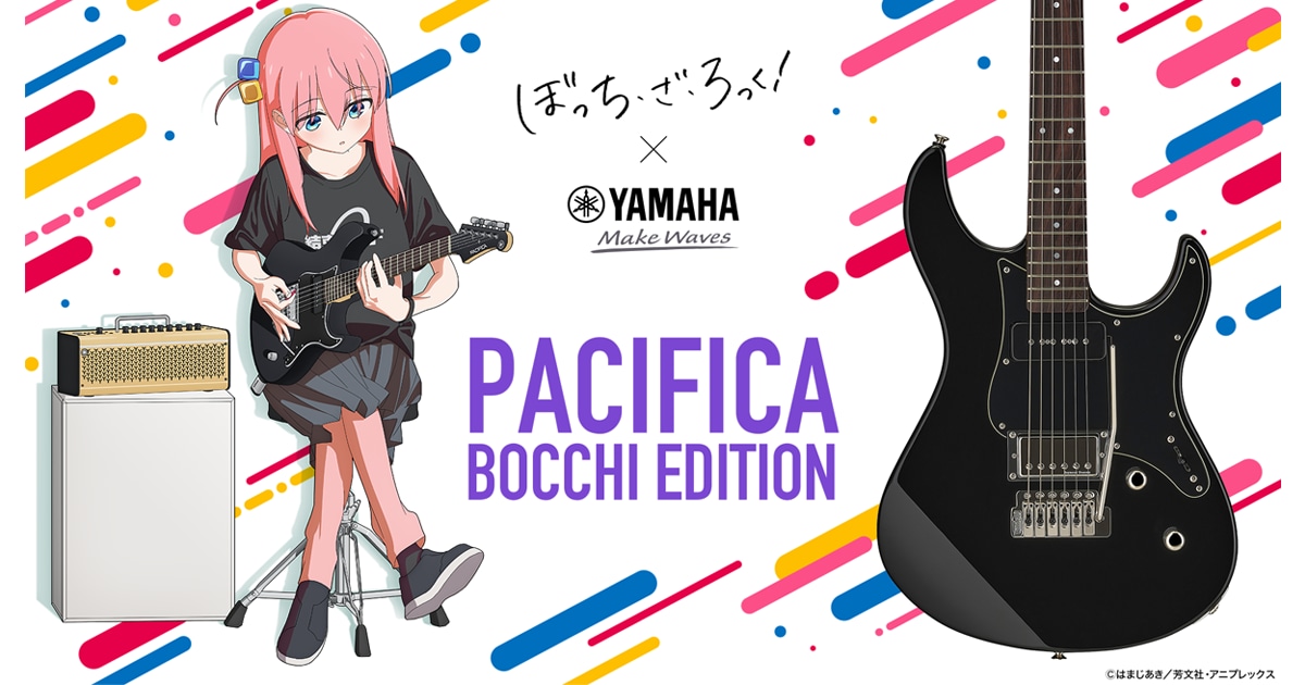 TVアニメ「ぼっち・ざ・ろっく!」作中に登場する、後藤ひとり(CV:青山吉能)が愛用するヤマハエレキギターPACIFICAシリーズ、廣井きくり(CV:千本木彩花)が愛用するヤマハエレキベースTRBシリーズ、両名が使用するヤマハギターアンプTHRシリーズを中心に、登場する楽器、機器について学べるサイトです。