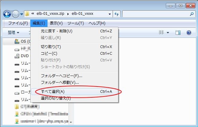 (4)フォルダーを開いたらウィンドウに切り替わるので、[elb-01_vxxx.zip]をダブルクリックします。