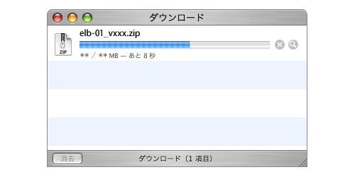※Mac OS9.xをお使いの方は、ZipIt、StuffIt Expander(v6.5以上)などZIPファイルを解凍できるソフトウェアが必要です。