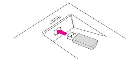 (1)バージョンアップデータの入ったUSBフラッシュメモリーを、向きを間違えないようにして、USB TO DEVICE端子に挿入します。