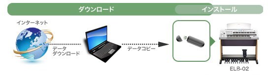 ※インストール中はUSBフラッシュメモリーを抜いたり、電源を切ったりしないでください。エレクトーンが使用できなくなる場合があります。