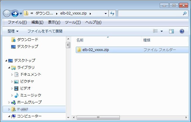 (4)フォルダーを開いたらウィンドウに切り替わるので、[elb_02_vxxx.zip]をダブルクリックします。