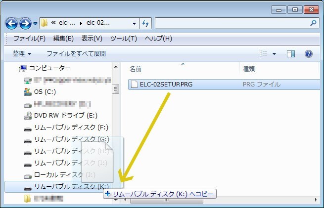 ・選択したファイルを用意したUSBフラッシュメモリー(リムーバブルディスク)にドラッグしてください。自動的にコピーされます。