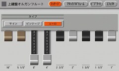 伝統的なオルガンと同じように、フッテージレバーで各フッテージのレベルを上げ下げしたり、パーカッシブサウンドを加えたりして、ゴージャスなフルオルガンサウンドが思いどおりに作れます。3つのタイプ(サイン/ビンテージ/ユーロ)から選び、ビブラートやロータリースピーカーなどオルガンならではの効果をかけることができます。
