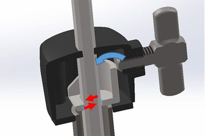 ダンパーロッドの締め付けシステムを新規設計しました。 締付ボルトを締結しクランプ状の部品が強い締結⼒を⽣み出し、ダンパーペダルを踏む込むときにダンパーロッドが滑り落ちません。