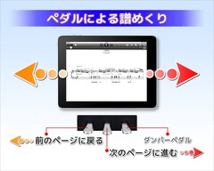 対応機種の中央のペダルでページを送り、左のペダルで前のページに戻ることができます。