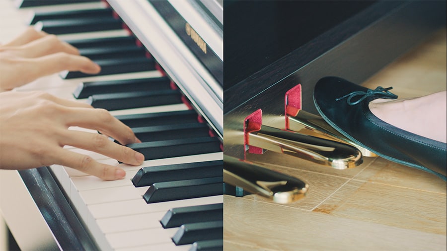 グランドピアノのような弾き心地で演奏できる鍵盤とペダル