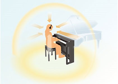 長時間ヘッドフォンを着用していても、自然な聴き心地が体感できるのは、奏者にとって大切なことです。クラビノーバでは、バイノーラルサンプリング音源「CFXグランド」以外のピアノ音色はすべて「ステレオフォニックオプティマイザー」が自然な音の広がりを再現します。まるでアコースティックピアノの前に座って弾いているような快適さが体感できます。
