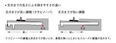 支点までの距離を長くとった鍵盤で、奥側でも弾きやすいタッチ