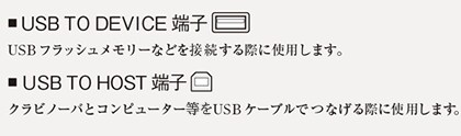 クラビノーバに、USBフラッシュメモリーやコンピューター等を接続してご利用いただくための端子です。