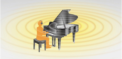 消音時に聞こえるピアノ音は、ヤマハコンサートグランドピアノCFXからサンプリングした音源を使用しています。ヘッドフォンを通して聴いても、あたかもピアノ本体から音が自然に響いてくるような臨場感が得られるバイノーラルサンプリング方式を採用。奏者の耳と同じ位置にマイクを置いて、聴こえてくるピアノ音をそのまま収録する事により、聴き疲れしにくく、立体的で自然な響きを再現しています。