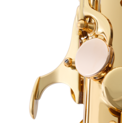 樹脂製のサムフック、サムレストをオプションパーツのメタル(真鍮)製に変更。低音部の豊かな鳴りと遠達性のある響きが得られます。ネックスクリューと合わせピンクゴールドメッキ仕上げにする事で、艶と華やかさも増しています。