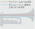 YTR-9335CHSおよびYTR-9335NYS、YTR-9445NYSにはベル横側(バルブケーシング側)につなぎ目がくるサイドシームを、YTR-9445CHSにはつなぎ目がベルの下側にくるボトムシームを採用しました。