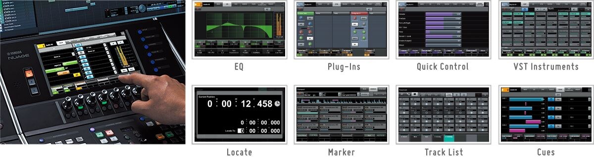 Nuage Masterのタッチスクリーン式マルチファンクションディスプレイでは、録音、再生、ミックス、編集、モニタリング、プリファレンス設定に関するありとあらゆるパラメーターに指一本ですぐにアクセスできます。最高のサブディスプレイとして、あなたの作業をしっかりとサポートしてくれます。