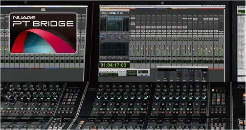 Nuageシステムの核となるDAWは、スタインバーグNuendoおよびCubaseを基本としていますが、専用ドライバー「NUAGE PT Bridge」を通じて、NuageからAvid Pro Toolsの操作を行うことも可能です。基本操作に加え、プラグインをコントロールしたり、ショートカットキーをユーザーアサイナプルボタンに登録したりすることも可能です。Pro ToolsをメインDAWとして使用することはもちろん、通常はNuendoを使用しながらも、必要に応じて過去に制作した作品のPro Toolsセッションファイルを開いたり、スタジオ外部のエンジニアがPro Toolsセッションファイルを持ち込んで作業したりする等、柔軟な運用が可能です。