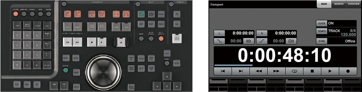 Nuendo/Cubaseの大きな特長の一つが柔軟な編集機能と迅速な編集スピードですが、それらの魅力を更に高めるべく、Nuage Masterの設計には細心の注意が払われました。非常に優れた分解能と操作感を持つ高品位なジョグホイールを中心にして、再生・録音・編集作業をスムーズの行う為のボタン群が整然と配置されています。