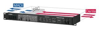 MADI/Dante変換において、異なるデジタルオーディオフォーマットを接続する際にはワードクロックの同期が課題となります。RMio64-DではMADI入出力ともにサンプリングレートコンバーター(SRC)を搭載しているため、MADIとDante各々を異なるクロックで動作させながら接続しても、ノイズや音切れなく運用できます。