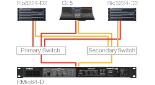 業務用オーディオシステムにおいて絶対に回避しなければならないもの、それは「音切れ」です。RMio64-DのDanteインターフェースはPrimaryとSecondaryの二つのポートを装備しているので、ネットワーク接続を二重化してより強固なインフラを構築できます。
