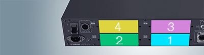 スロット1と3にLakeプロセッシングカード「MY8-LAKE」、スロット2と4に「MY8-DA96」を装着することで、「CLシリーズ」「QLシリーズ」等からのDante信号をRSio64-Dに装着された「MY8-LAKE」に入力、処理後の信号はDanteからはもちろん、「MY8-LAKE」のAES/EBU出力からも「MY8-DA96」のアナログ出力からも取り出し可能です。