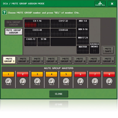 複数のインプットチャンネルを一括ミュート可能なミュートグループを8系統装備。新たにDimmer Levelも搭載しました。