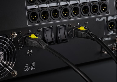 DM7シリーズでは、プロオーディオ機器を運用する上で大きなリスクとなる電源を二重化し、本番中の電源喪失リスクを軽減しています。万が一、一方の電源に問題が生じても、もう一方の電源が問題なければ、動作に影響することはありません。