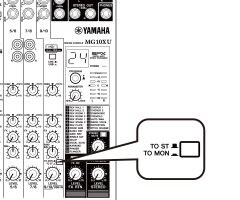 MG10XUの場合は、ステレオチャンネルにある[TO MON/TO ST]スイッチを「TO ST」に設定します。