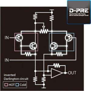 D-PREは、ヤマハがハイエンドレコーディング機器のために開発したディスクリートClass-Aマイクプリアンプ搭載のプレミアムなヘッドアンプ。 D-PREヘッドアンプには高級オーディオアンプで使用されてきたインバーテッドダーリントン回路を採用。その回路の特徴としては、増幅素子を多段構成にすることで大電流と低インピーダンスを確保。それにより中低域にハリと艶を持たせたスムースな質感をベースに、太く、そしてナチュラルな開放感、空気を感じる音の品位を実現。