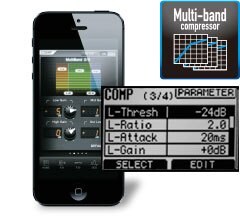このクラスのミキサーとしては初の、マスターコンプレッサーを搭載。帯域分割なしのシンプルなタイプ(Comp)と、3バンド帯域分割方式のタイプ(MultiBand)から選択が可能。