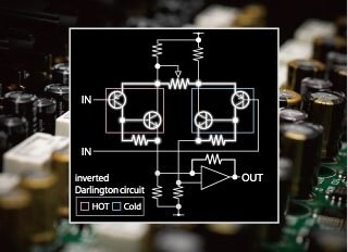 通常プリアンプは入力段の +(ホット)/ー(コールド)信号それぞれに1基ずつトランジスターを用いて、信号を増幅していますが、D-PRE は+/ー信号それぞれに2基のトランジスター(合計4基)を搭載 するインバーテッドダーリントン回路をベースにデザインしています。マイクプリアンプは、使い方や用途に よって、あえて特徴的な色付けを行うものがありますが、D-PREでは演奏者の表現力や、個々の楽器が持つ本来のエッセンスをありのままに捉えられるように丁寧にチューニングし、全周波数帯に渡りフラットな特性を実現しています。