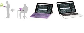「TF Editor」はオフラインでの使用だけでなく、コンソールとつないで本体の拡張画面として使用する事も可能で、マルチタッチ対応のWindows8 PCを使えば本体画面と同じ感覚でタッチコントロールができます。またWi-Fiを使ってのリモートミックスも可能。「TF StageMix」と 「TF Editor」は同時に3台まで使用することができ、複数のオペレーターによるミキシング操作や用途を分けた運用が可能です。